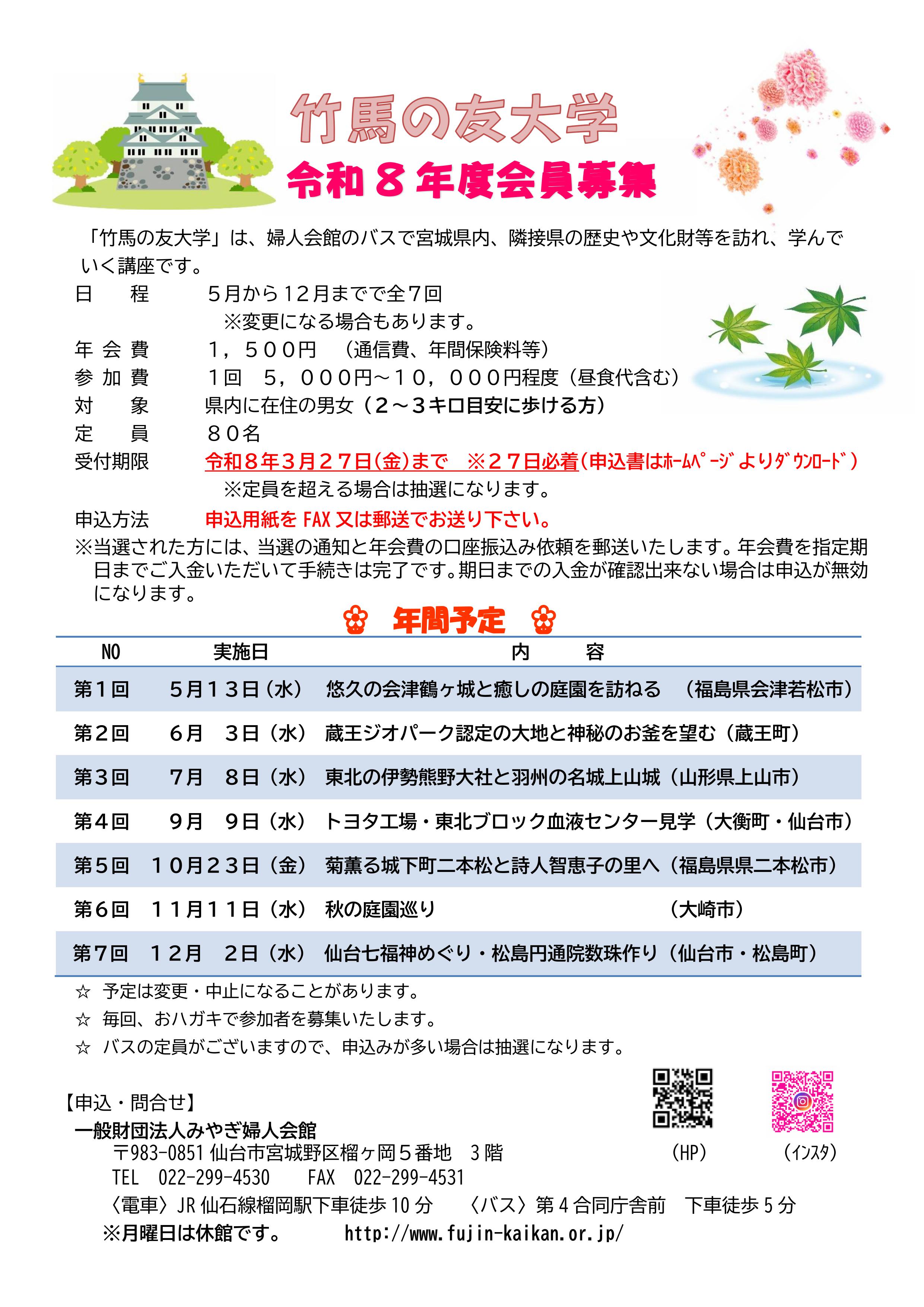 令和8年度「竹馬の友大学」会員募集